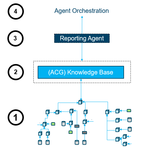 - The "ACG Knowledge Base" layer is a set of custom tools and logic for building and accessing metadata about the TM1 model. They scan the finance application and document the relationship between different objects on the TM1 server (summary information is pushed to detail with "Process X"). We can then serve this documentation to the agent so that it knows where to look for arbitrary data in the TM1 model.